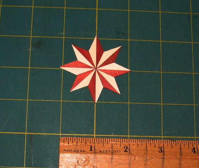 Eight-point stars - these are 2-1/2" across. Made from genuine Sapele and Holly.